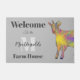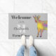 Eine lustige, farbenfrohe Babyziege willkommen Familienname Custom Doormat mit moderner Typografie und einfach personalisieren mit Ihrem Familiennamen. Niedliche Ziege farbenfrohe Nutztiere in kräftigen Farben auf grauem Hintergrund mit grau und schwarz moderner Schrift Typografie. Ideal für Farm-Tierfreunde und feiert die Verrücktheit des Tierlebens in der Landwirtschaft. Kostbare mehrfarbige Ziegenbilder von Künstlerin Catherine Sweetman