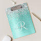 Dieses trendige, schicke Clipboard-Design mit hübschem silberglänzenden Glitzer auf aquamarinem, gebürstetem metallischem Hintergrund ist einfach zu personalisieren.