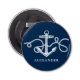 Dieser personalisierte Knopfflaschenöffner hat ein klassisches nautisches Ankerdesign auf marinebasischem Hintergrund.