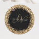 Glam Gold Glitzer Elegant Monogram Round Sticker. Dieses schicke Rundaufkleber-Design mit elegantem goldglänzenden Glitzer auf schwarzem Hintergrund ist einfach zu personalisieren. Das Design enthält Ihr handgeschriebenes Skriptmonogramm mit hübschen Wirbel und Ihrem Namen.