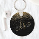 Glam Gold Glitzer Eleganter Monogram Schlüsselanhänger, Dieses schicke Design mit elegantem, goldglänzenden Glitzer auf schwarzem Hintergrund macht diesen schicken Schlüsselanhänger leicht zu personalisieren. Das Design enthält Ihr handgeschriebenes Skriptmonogramm mit hübschen Wirbel und Ihrem Namen.