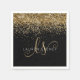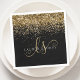 Glam Gold Glitzer Elegant Monogram Napkins. Dieses schicke Servietten-Design mit elegantem goldglänzenden Glitzer auf schwarzem Hintergrund ist einfach zu personalisieren. Das Design enthält Ihr handgeschriebenes Skriptmonogramm mit hübschen Wirbel und Ihrem Namen.