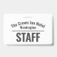 Das Hotelpersonal nannte das Identity Abzeichen. Das Hotel liegt sehr zentral, das Personal ist sehr freundlich und hilfsbereit. Einheitliches Identitätskennzeichen für Hotelangestellte. Tragen Sie Ihre Markenidentität über die Kleidung der Hotelangestellten hinweg. Auch perfekt für Pubs und Bar. Der Name des Hotels ist gebogen.