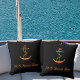 Ein klassischer schwarzer Hintergrund. Dekoriert mit Imitaten goldener Anker. Personalisieren Sie den Namen des Bootes und fügen Sie ihn hinzu.