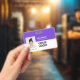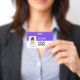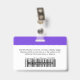 Dieses lila Mitarbeiter ID Abzeichen mit Foto, Scan Bar Code oder Qr-Code und Firmenlogo ist einfach zu personalisieren. Ein einfaches Business-Design in lebhaften Neon-lila-Weiß-Farbtönen, das vollständig anpassbar ist, Sie können jeden Farbhintergrund in Vorder- und Rückseite wählen, serifenlos einfache und moderne Schriftart und ein berufliches und klares Aussehen. Diese Standard-ID-Abzeichen sind mit einem Lanyard, einer Metallklammer oder mit einer Retraktable erhältlich. Mit dem Graphic Design Editor können Sie Ihre ID-Abzeichen-Karten individuell anpassen, indem Sie eine beliebige Hintergrundfarbe und einen beliebigen Schriftart auswählen. Keine Mindestbestellung.