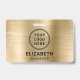 Modernes, gebürstetes Imitat mit metallischem Namen Abzeichen mit Ihrem Firmenlogo. Fügen Sie einen Namen und einen Jobtitel in einfacher Typografie hinzu.