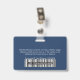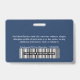 Dieses Custom Horizontal Employee ID Company Name Abzeichen ist einfach mit Foto, Scan Bar Code oder Qr Code und Business Logo zu personalisieren. Ein einfaches Business-Design in marineblau-weißer Farbe, das in Vorder- und Rückengrößen vollständig anpassbar ist, serifenlose, einfache und moderne Schriftart und ein berufliches und klares Aussehen. Diese Standard-ID-Abzeichen sind mit einem Lanyard, einer Metallklammer oder mit einer Retraktable erhältlich. Mit dem Graphic Design Editor können Sie Ihre ID-Abzeichen-Karten individuell anpassen, indem Sie eine beliebige Hintergrundfarbe und einen beliebigen Schriftart auswählen. Keine Mindestbestellung.