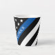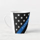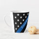 Zeigen Sie Ihre Unterstützung mit dieser dünnen blauen Linie Polizei-Fahne latte Tasse. Dieses Design verfügt über eine schwarz-weiße Polizeiflagge mit einer dünnen blauen Linie in einem Winkel und einen Namen für Sie zu personalisieren. Entworfen von dem weltbekannten Künstler ©Tim Coffey.