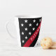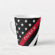 Zeigen Sie Ihre Unterstützung mit dieser dünnen roten Feuerwehrflagge latte Tasse. Dieses Design verfügt über eine schwarz-weiße Feuerwehrflagge mit einer dünnen roten Linie in einem Winkel und einen Namen für Sie zu personalisieren. Entworfen von dem weltbekannten Künstler ©Tim Coffey.