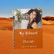 Ein trendiger, orangefarbener Hintergrund. Personalisieren und fügen Sie Ihr eigenes Foto, einen Titel, Vornamen, Monogrammbuchstaben und vollständigen Namen.