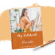 Ein trendiger, orangefarbener Hintergrund. Personalisieren und fügen Sie Ihr eigenes Foto, einen Titel, Vornamen, Monogrammbuchstaben und vollständigen Namen.
