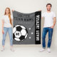 Personalisierte Fußball-Fleecedecke für Fußballspieler, wenn sie keine Tore auf dem Feld schießen, und für ihre Eltern, ihre Kinder zu unterstützen und bei kalten Spielen warm bleibe! Ein einzigartiges Teamgeschenk für Reiseturniere. Das Design umfasst einen Fußball, der mit der einheitlichen Spielernummer des Spielers abgestimmt ist, einen benutzerdefinierten Text für den Vor- und Nachnamen des Spielers und einen modernen Text für den Namen der Fußballmannschaft. Das stilvolle und moderne Design besticht durch eine sportliche Auswahl an Jersey-Schriften und einfache horizontale Streifen mit Sternakzenten. Das Farbschema von Holzkohle grau, schwarz und weiß kann so geändert werden, dass es mit den Teamfarben abgestimmt wird.