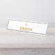 Leicht zu personalisieren Schreibtischschild mit einfacher Goldskripttypografie auf einem sauberen weißen Hintergrund.