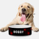 Red Hearts Glitzern Dots Muster Name Bowl. Dieses schlichte und stilvolle Design kommt mit roten Herzen, Glitzern und Punkten auf schwarzem Hintergrund. Fügen Sie den Namen Ihres Hundes hinzu.