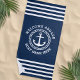 Handtuch mit eigenem Bootsnamen und Anker mit kreisförmigem Seilrand und dem Text "Willkommen an Bord" oder einem anderen benutzerdefinierten Text