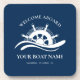 Willkommen an Bord Ihres Bootes oder in Ihrem Beach Party mit diesen modernen marineblauen, blauen und weißen nautischen Untersetzer, mit einem stilisierten Schiffrad und Ozeanwellen, mit individuellem Bootsnamen und Registry. Karo der Kollektion für passende Produkte. Wenn Sie andere Farbtöne oder mehr passende Produkte wünschen, kontaktieren Sie mich bitte über den Zazzle Chat.