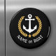 Ein Personalisierter Rundmagnet mit Ihrem Bootsnamen, Familiennamen oder beliebigem Text. Mit einem speziell entwickelten nautischen Bootsanker, goldenen Blätter und Sternemblem auf schwarz oder passen die Primärfarbe leicht an Ihr aktuelles Thema an.