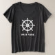 Ihr personalisierter Bootsname, Ihr Name oder ein anderer Wunschtext mit einem eigenen nautischen Schiffsrad - Helm in Weiß auf einem dunkelgrauen, weiblichen plus T - Shirt.
