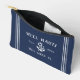 Set-Segel im Stil mit diesem anpassbaren nautischen Reißverschluss-Beutel von Redwood & Vine Design Co. Entwickelt mit knalligen weißen Ankerkunstwerken und Küstenstrippakzenten, kann dieses haltbare Accessoire mit Ihrem Bootsnamen, Jahr oder Spezialtext personalisiert werden. Ideal, um das Wesentliche an Bord zu organisieren, für Angelausflüge zu packen oder dem Wassersportler in Ihrem Leben zu schenken, bringt es Charme und Funktionalität zu jedem Abenteuer.