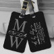 Erstellen Sie Ihr eigenes stilvolles, modernes, benutzerdefiniertes, schwarzes, vertikales Monogramm Name Gepäckanhänger. Dieses elegante und moderne Gepäckanhänger verleiht jedem Reiseabenteuer eine personalisierte Touch, ideal für alle, die mit Stil erkunden möchten. Auf der Vorderseite befindet sich ein dunkelgraues, zweibuchstabiges Serifenmonogramm, das die ersten und letzten Initialen verwendet und vertikal mit Ihrem vollständigen Namen in weißem handgeschriebenem Skript zentriert ist. Der schwarze Hintergrund verleiht diesem eleganten und kühlen Look, der sowohl für Männer als auch für Frauen gut funktioniert. Auf der Rückseite bleibe der Hintergrund schwarz mit allen Texten in knusprig weiß. Der Satz "Diese Tasche gehört dazu" erscheint in einem Skript-Schriftart, in dem Ihr Name und Ihre Kontaktdaten in einer Mischung aus fett formatierten Serifen und Skripten für einen sauberen, stilvollen Kontrast dargestellt werden. Alle Farben können individuell angepasst werden, sodass Sie Hintergrund, Initialen und Textfarben an Ihren persönlichen Stil anpassen können. Dieses persönliche Gepäckanhänger ist ein praktisches und nachdenkliches Geschenk für Reisende - ideal für Geburtstage, Ferien oder einfach nur weil.