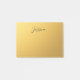 Name des schwarzen Skripts auf goldenem Hintergrun Post-it Klebezettel
