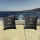 Ein klassischer schwarzer Hintergrund. Dekoriert mit Imitaten silberner Anker. Personalisieren Sie den Namen des Bootes und fügen Sie ihn hinzu.