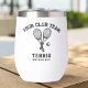 Ein super lustiger Wein oder Kaffeetscher mit gekreuzten Tennisschlägern, einem Ball und 3 Zeilen personalisierten Textes. Perfekt als Club- oder Turnierpreis, Geschenk für Ihre Tennisfreunde, ein Tennisausflug-Memento, Drinks für Apres-Tennis-Ansammlungen und einfach nur alltäglicher Tennisspass! Die Farbe der Schläger kann geändert werden.
