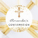 Eine klassisch weiße Hintergrundfarbe. Mit Imitaten vergoldeter Glitzer-Staub und einem goldenen Kreuz dekoriert. Personalisieren und einen Namen hinzufügen.