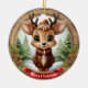 Name Fantasievolles Rentier Rustikaler Weihnachtsbaum Keramik-Schmuck! Weihnachts-Rentier-Geweih-Tier-Figur-Schmuck mit anpassbarem weißen Text, der "Frohe Weihnachten" auf einem lebendigen roten Band sagt – kann leicht gegen den Namen eines geliebten Menschen ausgetauscht werden, um es zu einem wirklich persönlichen Geschenk-Anhänger zu machen. Runde, braune Holz-Optik mit charmanten Akzenten aus Kiefernzapfen und immergrünen Zweigen für eine gemütliche Wald-Atmosphäre. In der Mitte befindet sich ein süßes, fantasievolles Rentier im Cartoon-Grafikstil, gekleidet in einen braunen Mantel und Hut, das den Geist der Wildnis mit einer festlichen Note hervorruft. Der Hintergrund zeigt eine zauberhafte Winter-Wunderland-Szene, komplett mit schneebedeckten Bäumen, die die Freude der Wintersaison einfangen. Dieser zweiseitige, personalisierbare Schmuck sorgt für festlichen Charme aus jedem Winkel – die liebliche Illustration erscheint auf Vorder- und Rückseite, sodass es immer vollständig aussieht, egal wie es beim Hängen rotiert. Perfekt zum Verschenken oder Dekorieren, und Sie können dieses einzigartige Design auf eine Vielzahl anderer Produkte übertragen, von Tassen bis hin zu Karten und mehr! Personalisieren Sie Ihren Kiefernzapfen-Schmuck und bringen Sie heute dieses entzückend einzigartige Erinnerungsstück