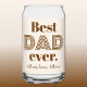 Popular beverage glass featuring DAD in an eye-catching retro font, 'Best ever.' in bold typography lettering, a linen color band around the glass and modern name. The text is an 'aged copper' color. This stylish 16oz drinking glass resembles a classic beverage can design. Easily change text and name to make it yours using the Template provided. To edit and change font style, font color, size and more-- use the Design Tool. Made in the USA. See "About" at side for more information. ===>Hand wash<===
