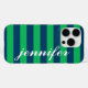 Dress up and protect your iphone with a preppy, modern and fett gestreifte pattern design, that is custom mit Monogramm with your first name in a Kleinbuchstaben script Schriftart. Dunkle Marine / Indigoblau und kelly grüne horizontale Streifen kontrastiert mit weißem Text.