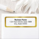 Diese Business-Rücksendeadressen-Aufkleber haben drei Textlinien. Die Top-Linie ist fett für den Firmennamen. Zwei zusätzliche Textzeilen stehen für Ihre Straßenadresse, Stadt, Staat und Postleitzahl zur Verfügung. Das Etikett hat einen goldenen Rahmen für Imitate (nicht für Folien).