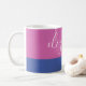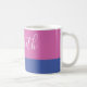 Diese moderne und farbenfrohe Tasse besticht durch ihren Namen in trendigen handgeschriebenen Schriften und ein modernes Farbblockdesign in purpurpurfarbenem Rosa und Blau.