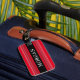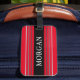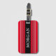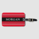 Name in Weiß, Schwarz und Grau Streifen, rot Gepäckanhänger