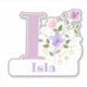 Personalisieren Sie jedes Element mit einem Namen und Initial mit einem Blumen-Design-Ausschneidungs-Sticker. Beispielname ist Isla.