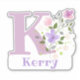Name Kerry plus Initial mit Blumendesign Aufkleber
