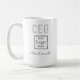 Eine CEO-Tasse mit Ihrem Namen und Logo. Das Design ist in Grau und Schwarz gehalten. Fügen Sie einfach Ihre Informationen hinzu, fügen Sie diese Tasse Ihrem Warenkorb hinzu und trinken Sie Ihren Kaffee wie den Chef, den Sie sind.