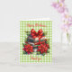 Eine personalisierte Merry Bookmas Karte mit einem schönen Stapel von Aquarellbüchern, einem großen roten Band und Poinsettias gegen einen grünen Gingham. Eine einzigartige Weihnachtskarte für Buchwürmer, Mitglieder des Buchclubs und vieles mehr.