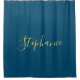 Name Monogram Gold Blue Classy Custom Duschvorhang