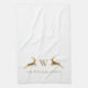 Name Monogram Gold Deer Kitchen Handtuch. Großartiges Springhirsche Monogramm und Familienname in goldfarbenem Text auf Elfenbeinweiß. Ausgezeichnet für Winter, Urlaub, Weihnachtsdekoration und Geschenke. Wir laden Sie ein, unseren Zazzle-Shop, Austen & Grace, zu besuchen, um passende Produkte und mehr zu sehen.