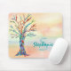 Dieses rustikale Mauspad ist mit einem Mosaikbaum in Regenbogenfarben auf einem Aquarellhintergrund geschmückt. Passen Sie es mit Ihrem Namen und Monogramm an. Weil wir unsere Kunstwerke erstellen, werden Sie dieses exakte Bild von anderen Designern nicht finden. Original Mosaic & Watercolor © Michele Davies.