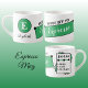 Espresso-Tasse. Geschenkidee für einen Kaffeeliebhaber. Jobliste: Entspannen, kühlen, glücklich sein. Hände von meinem Espresso. Fügen Sie einen Namen und einen Initial hinzu. Design in grün und schwarz.