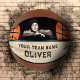 Spielername Nummer Wood Keepake Foto Basketball. Individuelles Foto und zwei Basketbälle auf jeder Seite und Basketballplatz Holzfußboden. Personalisieren Sie es mit dem Namen, der Nummer, dem Teamnamen und dem Foto des Spielers. Ein großartiger personalisierter Basketball-Sake, um sich an den Lieblingssport zu erinnern.