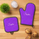 Name oder Monogramm eines Lila Skripts Ofenhandschuh & Topflappen-Set