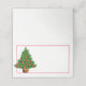 Diese gefaltete Platzkarte wird in Grundweiß mit einem festlichen Weihnachtsbaumprint und einem rot gefärbten Rahmen gezeigt. Passen Sie dieses Objekt an oder kaufen Sie, wie es ist.