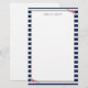 Name Preppy Chic Blue Stripes Rosa Blume Briefpapier