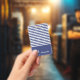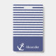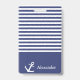 Marineblau- und weißesgestreiftes Abzeichen kann mit Ihrem Namen personalisiert sein. Ein weißer Anker ist neben Ihrem Namen. Über dem Namen sind Marineblau- und weißehorizontale Streifen.