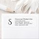 Ein einfaches und übersichtliches Rücksendetikett mit Familiennamen, Namen und Adresse auf weißem und sauberem Hintergrund