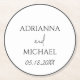 Name und Datum des Hochzeitskopfes weiß Runder Pappuntersetzer