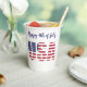 Patriotisches Fahnenschablonendesign mit "Happy 4th of July" in stylish marineblau Schriftzeichen schmücken diesen festlichen White Paper Cup. Fügen Sie einfach Namen oder Text auf der Rückseite hinzu, um es mithilfe der bereitgestellten Vorlage zu speichern. Wählen Sie 8 oder 12 Oz Kapazität. Ideal für kalte und warme Getränke. Fügen Sie einen Deckel für eine kleine Aufladung hinzu. Weitere Informationen finden Sie unter "Über dieses Produkt" an der Seite. Hergestellt in den USA